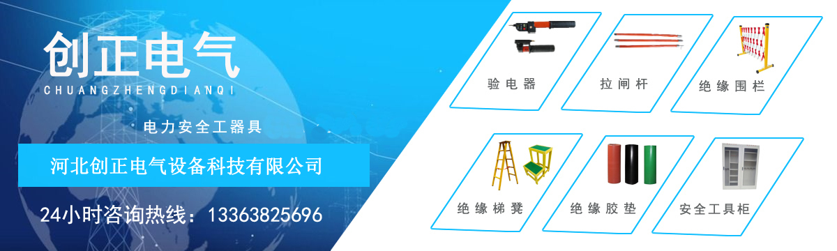 河北創正電氣設備科技有限公司主要經營產品包括:高壓驗電器、高壓接地線、高壓拉閘桿、絕緣橡膠墊、絕緣伸縮圍欄、絕緣梯、安全工具柜、絕緣凳、擋鼠板、安全警示帶、絕緣臺、安全帶、腳扣、安全帽、標識牌、絕緣手套、絕緣靴等電力安全工器具。公司以“服務電力系統,努力永無止境”為目標,以“人才就是生產力”為戰(zhàn)略,以經驗為依托,以理念為指導,以員工為基礎,以市場為支撐,貫徹“以顧客需求為上”的經營理念,以合格的質量,合理的價位,適應市場的需求。